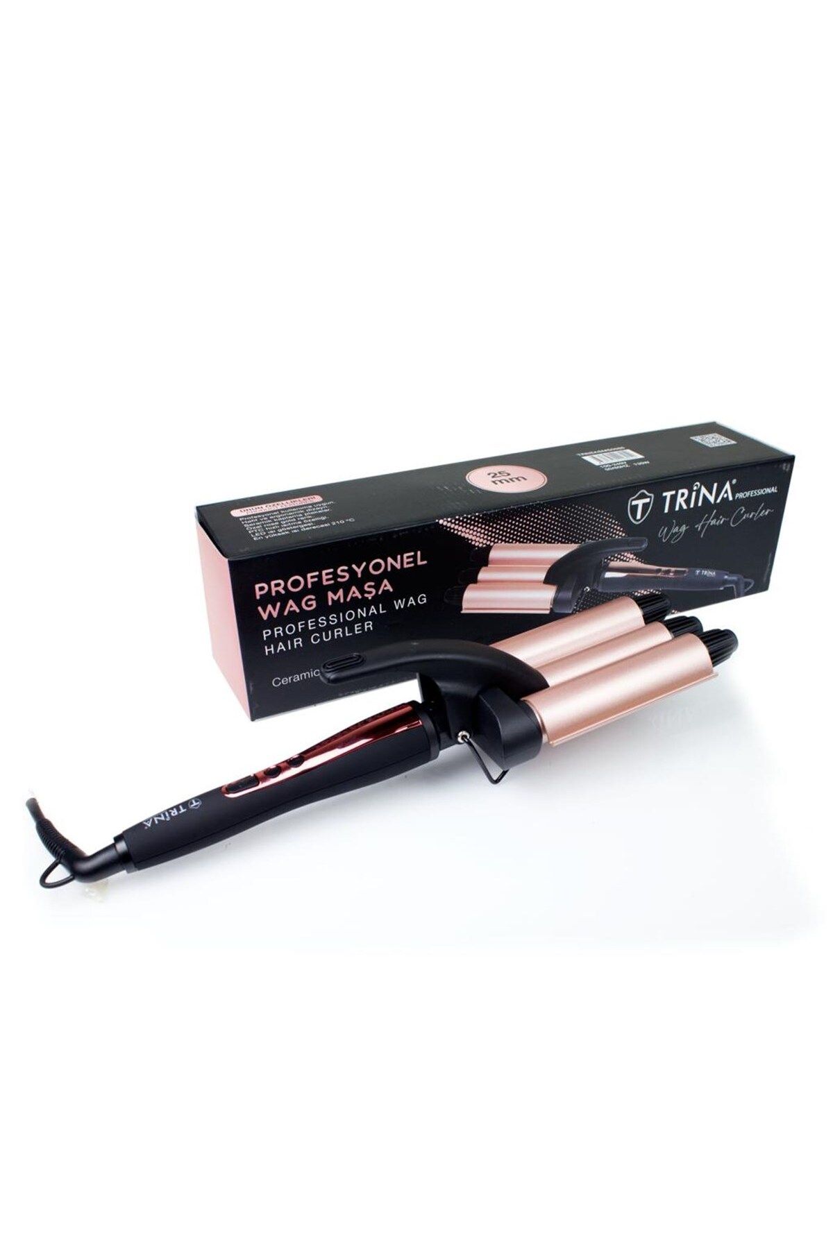 Trina Profesyonel Saç Maşası 25 mm - 85 Hızlı ısınma özelliği. Seramik kaplama plakalar. 360 derece dönebilen kordon Metal koruma standı. En yüksek ısı derecesi: 210 derece Renk: Rose Gold 100-240V / 50-60Hz Güç: 105 W